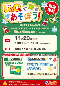 - 2025年11月1日 ブックヤードからのお知らせ ◆LaQであそぼう!体験イベント
